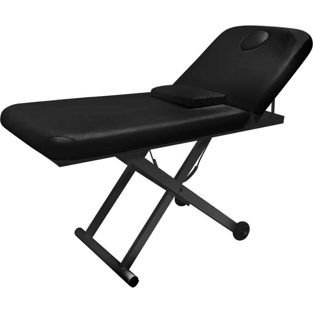 La Estructura de la camilla es metálica, pintada en color negro. Carcasa en forma X, que permite al tatuador acercarse con la silla tan cerca al cliente como sea necesario.